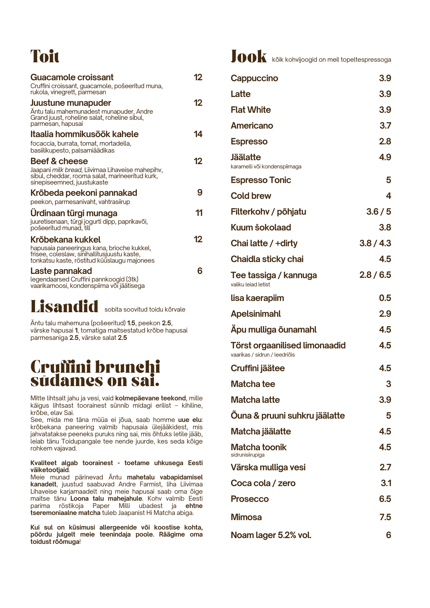 Telli endale sobivad tooted ette ja saad need kätte ilma järjekorras ootamata. Saia saad tellida nii Aparaaditehase kui Raekoja platsi Cruffinisse.